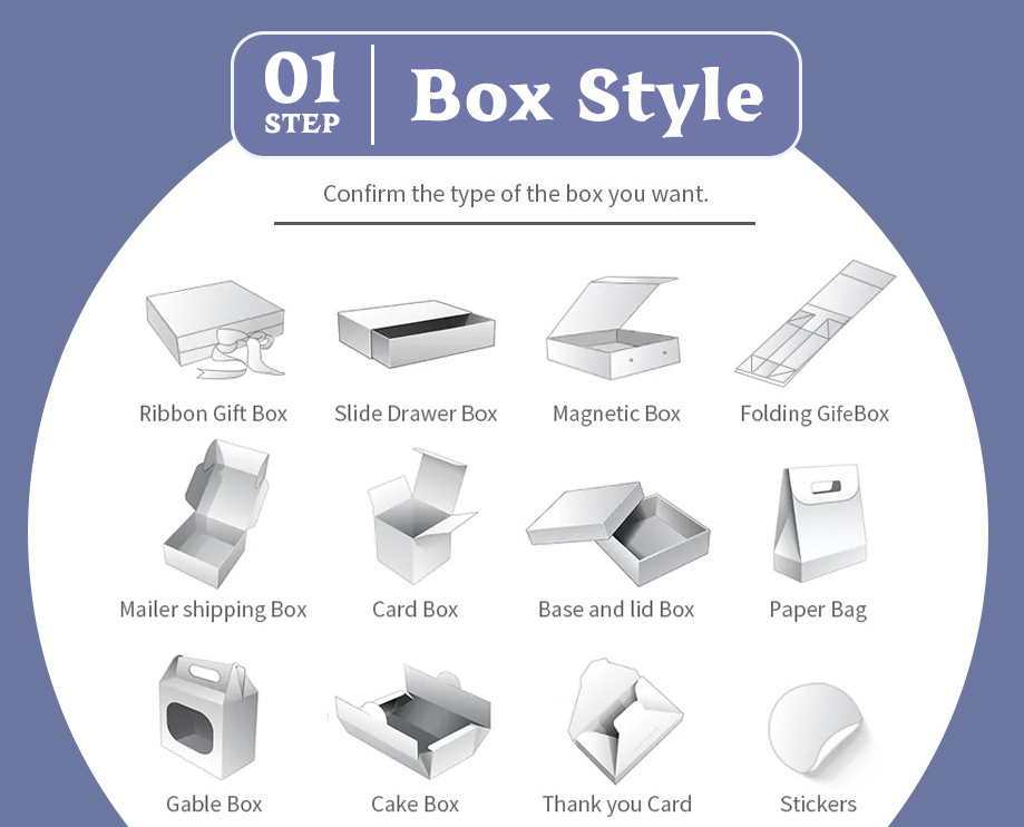 1. Elija el estilo de embalaje: por ejemplo, caja de cartón, tubo/cilindro, bolsa de papel, bolsa de compras.
